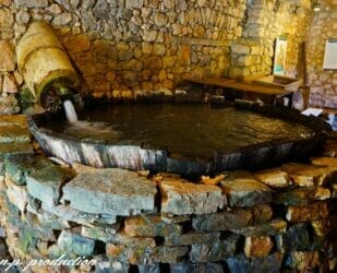 Κατά τη διάρκεια της Επανάστασης του 1821, οι Δημητσανίτες τροφοδοτούσαν τον αγώνα με το απαραίτητο αυτό πολεμικό υλικό. Εδώ μπορείτε να δείτε τον κινούμενο μηχανισμό ενός μπαρουτόμυλου με κοπάνια. Έξω από τον μύλο θα δείτε ρακοκάζανο, που στηνόταν στην ύπαιθρο μετά τον τρύγο, για την παραγωγή τσίπουρου από τα στέμφυλα.